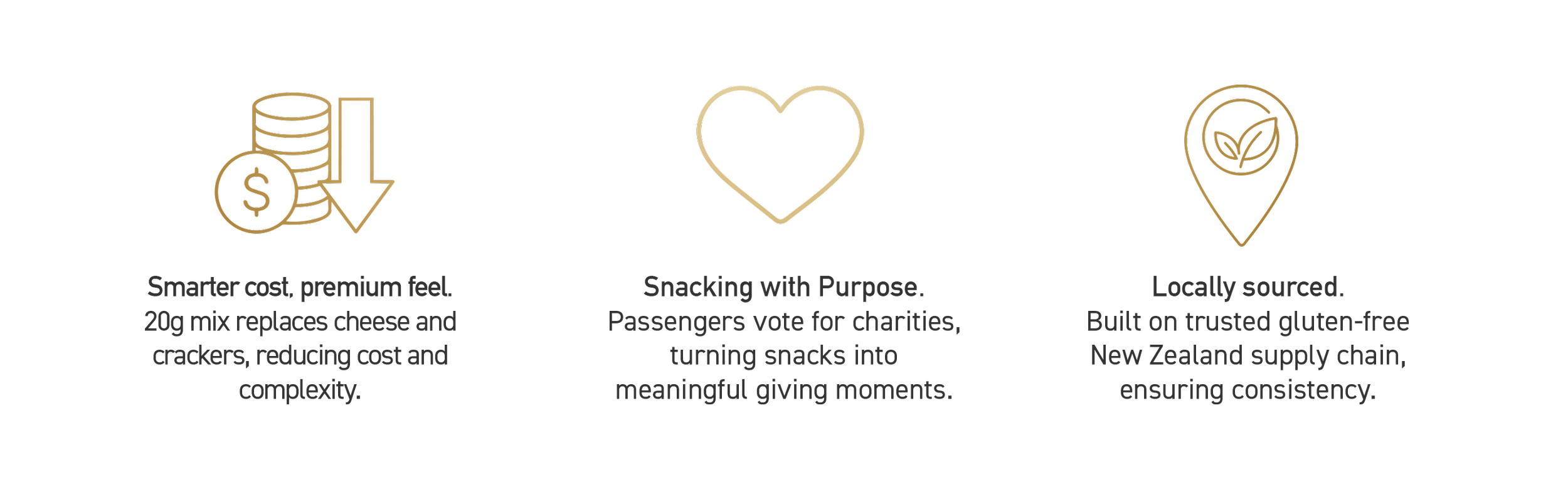Expertly crafted flavour profiles designed to pair perfectly with your wine service, elevating the premium cabin experience for discerning passengers.